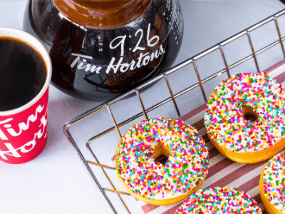 Populiarumą „Tim Hortons“ kavinių tinklas užsitarnavo sutelkęs dėmesį į kokybę ir visada šviežią produktą. Pradžioje siūlęs tik kavą ir spurgas, šiandien „Tim Hortons“ meniu kur kas gausesnis – keksiukai, bandelės, pyragai, sumuštiniai ir t. t. Kiekvieno skoniui.